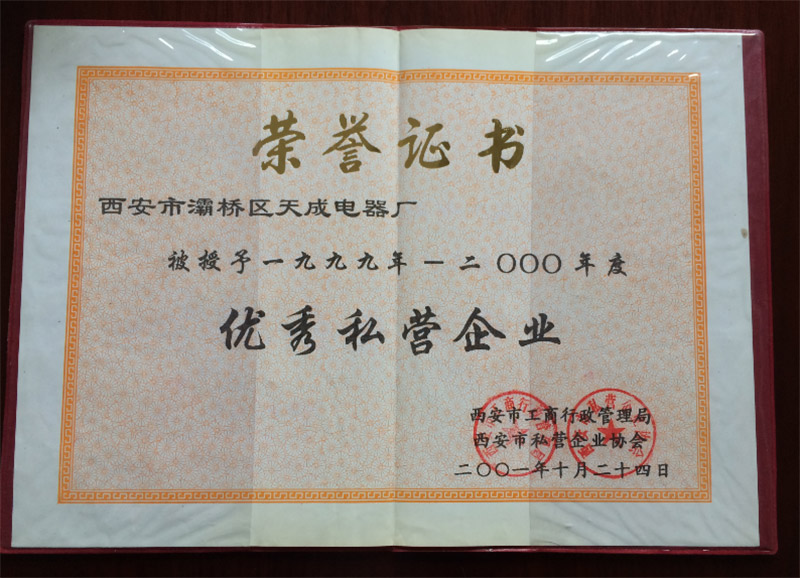 • 1999年优秀私营企业
